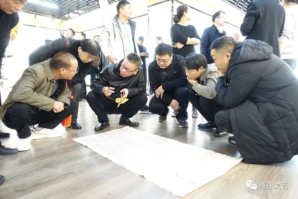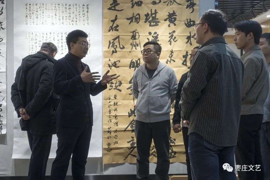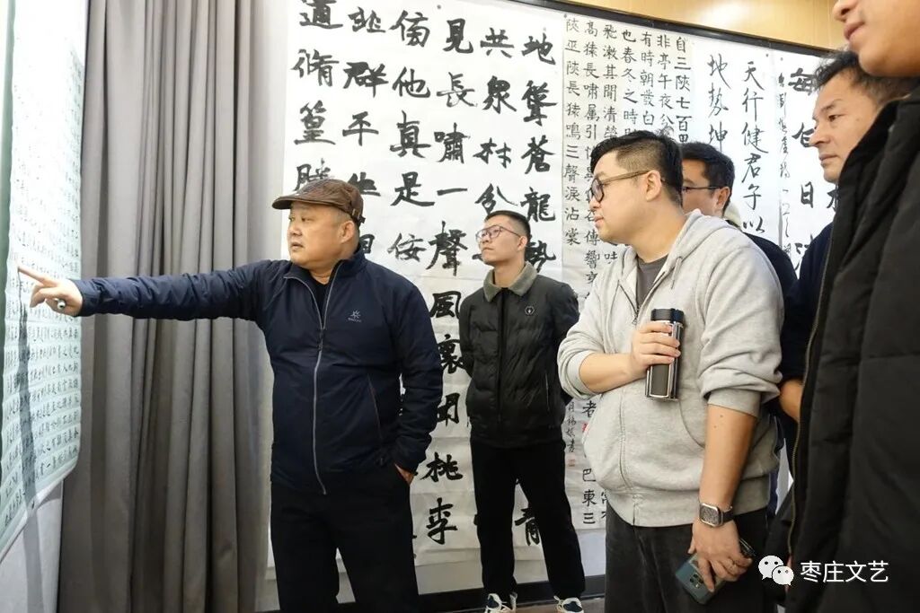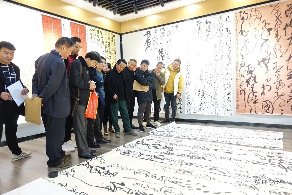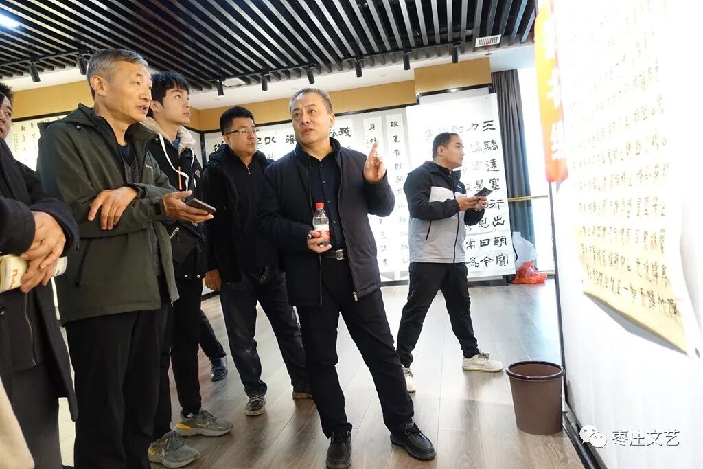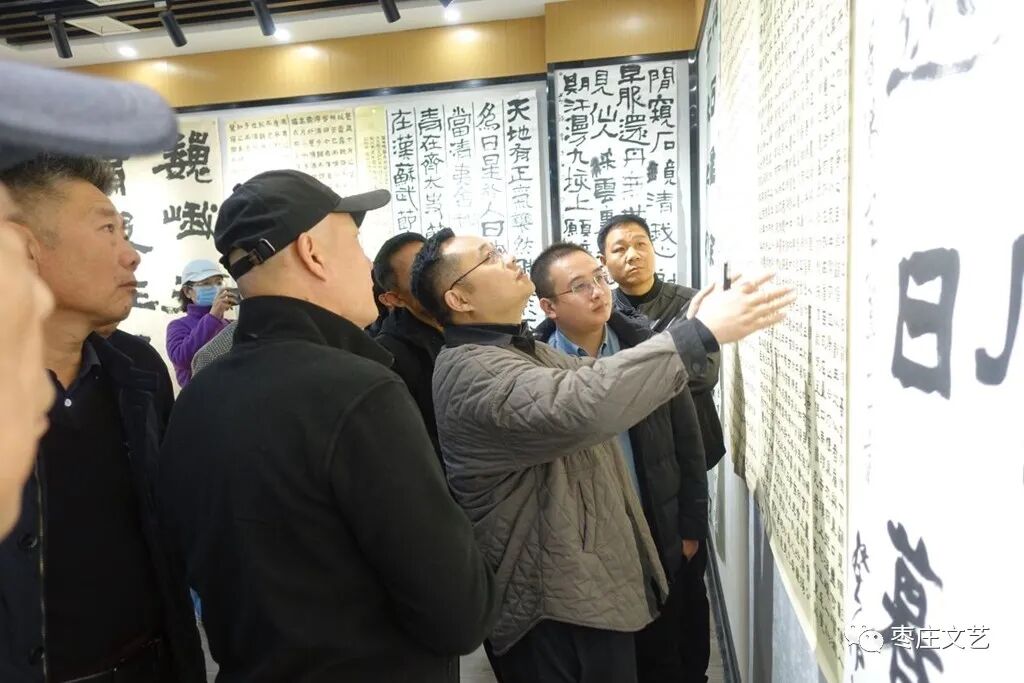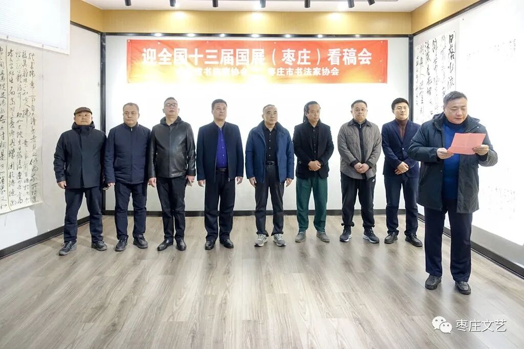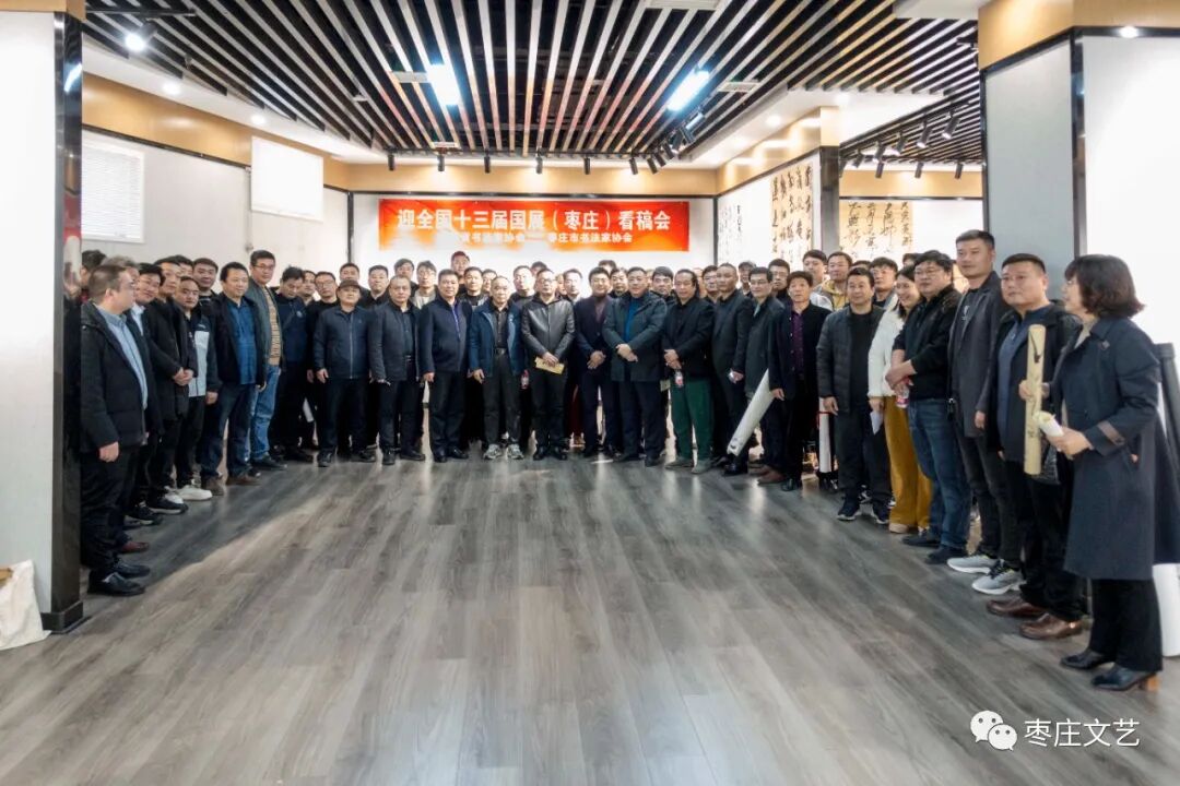 2023年11月21日,山东省书法家协会迎接全国第十三届书法篆刻展览全省巡回看稿活动在枣庄市文化馆展厅举行。山东省书法家协会副主席徐华志,中国书协理事、行书委员会委员、省书协副主席蒋乐志,中国书协篆书委员会委员、省书协副主席、西泠印社社员倪和军,中国书协理事、省书协副主席逄春伟,省书协主席团委员兼秘书长郝晓明,中国书协草书委员会委员、省书协主席团委员杨雯,中国书协书法评论与文化传播委员会委员、省书协主席团委员陈培站等出席活动、参与点评作品。枣庄市文联党组成员、副主席叶建军出席活动启动仪式。看稿会由山东省书协顾问、枣庄市文联副主席、市书协主席马建钧主持。