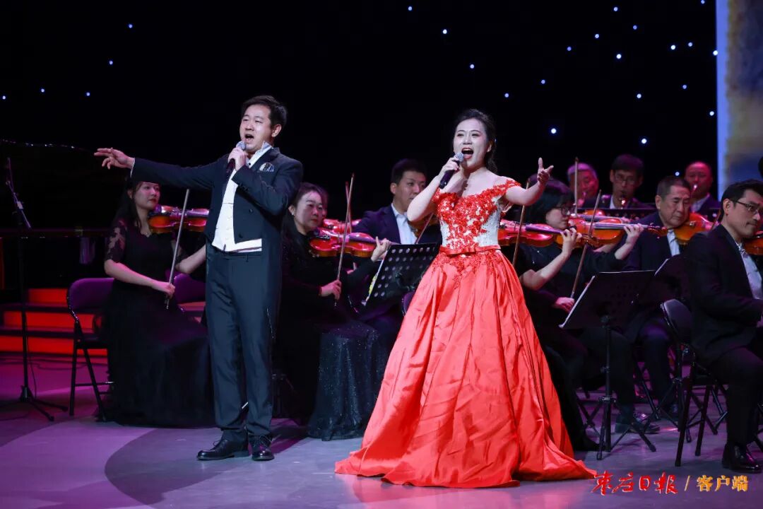 “从胜利走向新的胜利,灿烂的阳光照耀着五星红旗”,市音乐家协会爱乐乐团带来的组曲《保卫黄河》《红旗颂》《在灿烂阳光下》《北京喜讯到边寨》拉开了演出序幕。随后的《谁不说俺家乡好》《江山》《为祖国干杯》等歌曲,民族通俗和美声花腔交融,赞颂了时代之变、中国之进、人民之呼的壮阔图景。来自意大利歌剧的《饮酒歌》热情洋溢、轻快明亮,英文流行曲《你鼓舞了我》娓娓倾诉、鼓舞人心。市老年大学爱乐合唱团表演的《灯火里的中国》安宁祥和,“祖国万岁”出现在舞台中央,照亮了夜空璀璨下的万家灯火。