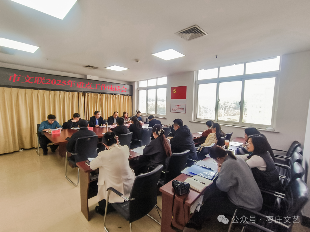 2月13日,枣庄市文联召开2025年重点工作座谈会,深入学习贯彻全省抓改革创新促高质量发展大会、枣庄干部讲堂“新春第一讲”和全市宣传部长会议精神,交流总结去年工作,安排部署2025年重点工作。市文联党组书记、主席李景龙主持会议并讲话,市文联机关及事业中心全体人员参会。