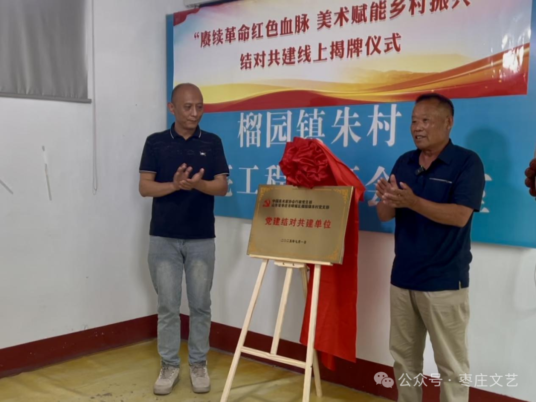 为深入开展中央八项规定精神学习教育、延伸主题教育成果、协同推进文化强国建设、拓展党建联学共建网络、用艺术乡建赋能乡村全面振兴,中国美协行政党支部与峄城区榴园镇朱村党支部结为党建共建单位。7月1日,双方以线上形式举行了“赓续革命红色血脉 美术赋能乡村振兴”主题党日暨结对共建揭牌仪式。