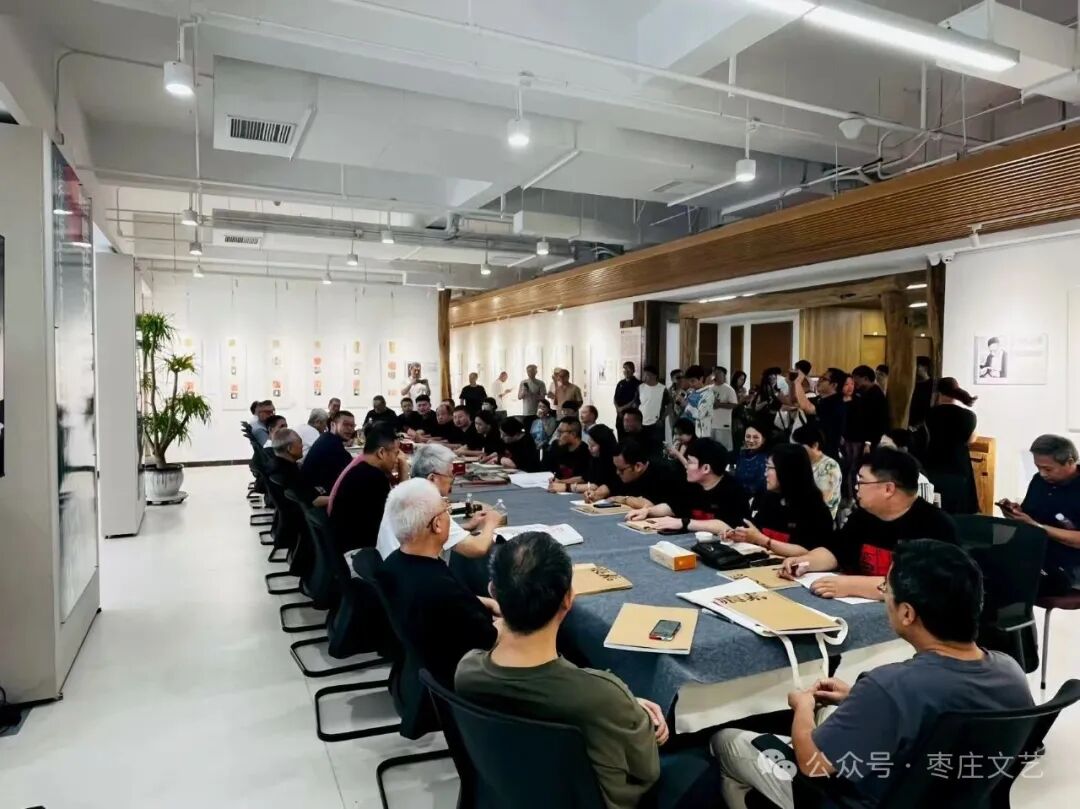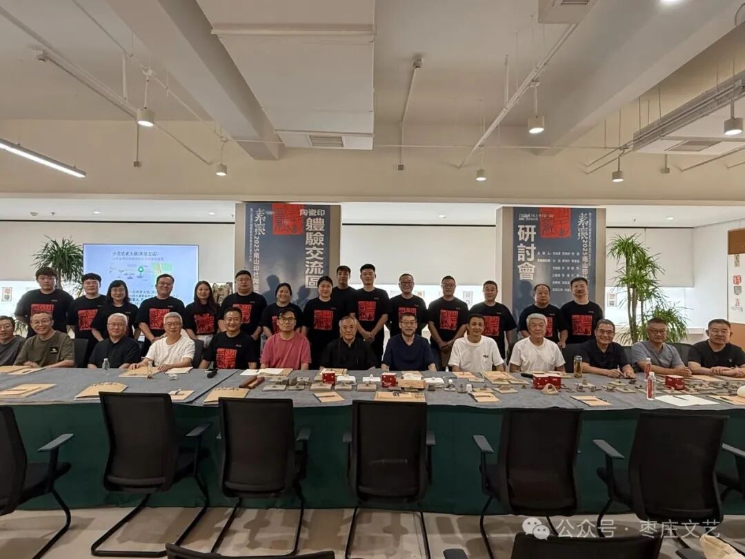8月16日,由市书协、枣庄当代书法院联合主办的第三届当代国际篆刻家陶瓷印展平行展暨素痕-2025南山印社陶瓷印探索展在枣庄鼎薪艺术馆举行。省书协副主席兼篆刻委员会主任于剑波,当代篆刻家精品艺术丛书《中国陶瓷印》主编李成军,山东艺术学院教授、硕士生导师王谦,省青年书协、市文联、市书协相关负责同志及书法篆刻爱好者200余人参加活动。