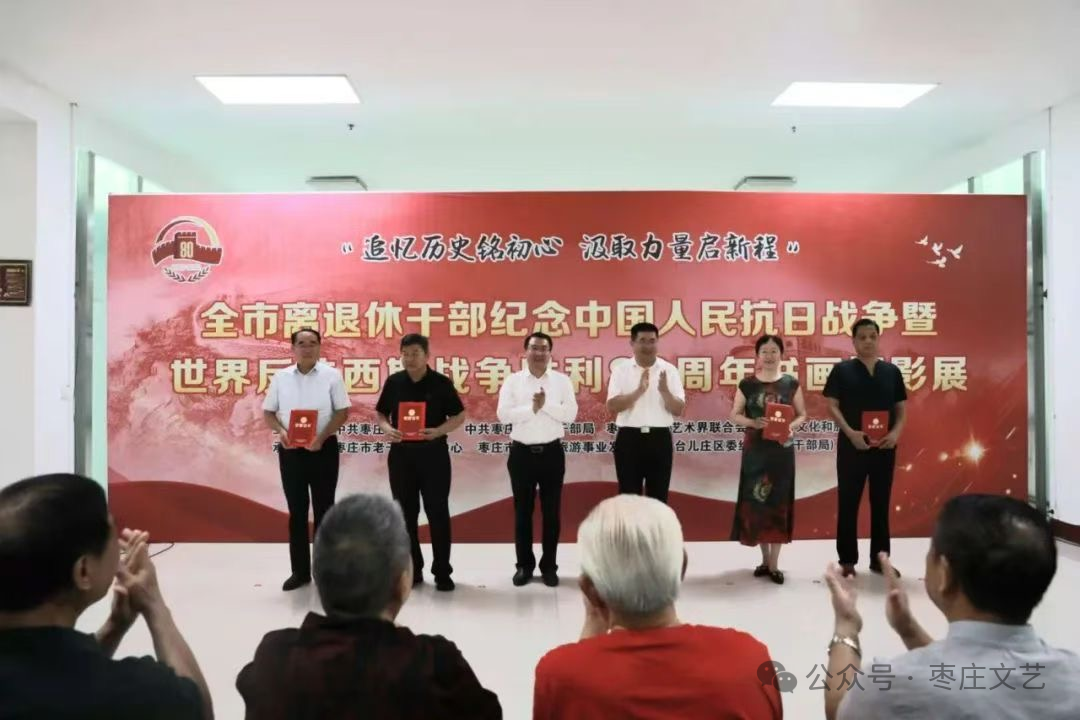 作为全市离退休干部纪念抗战胜利80周年系列活动的重要组成部分,本次展览由市老干部活动中心、市文化和旅游事业发展中心、台儿庄区委组织部(老干部局)共同承办。开展仪式现场,主办方为获奖离退休干部代表颁发证书,随后与会人员共同参观展览。