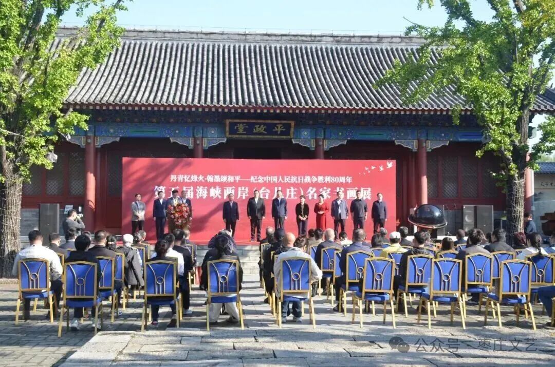10月14日,“丹青忆烽火·翰墨颂和平——纪念中国人民抗日战争胜利80周年”第五届海峡两岸(台儿庄)名家书画展在我市台儿庄开幕。市委常委、宣传部部长、统战部部长陈永生出席开幕式并致辞。台儿庄区委副书记、区长李军主持。省台办交往交流处处长、二级巡视员吴莹,台湾嘉宾徐政佑,中国书法家协会会员廖廷建,市文联党组书记、主席李景龙,市文旅集团党委书记、董事长苑永利及百余名两岸书画艺术家参加。