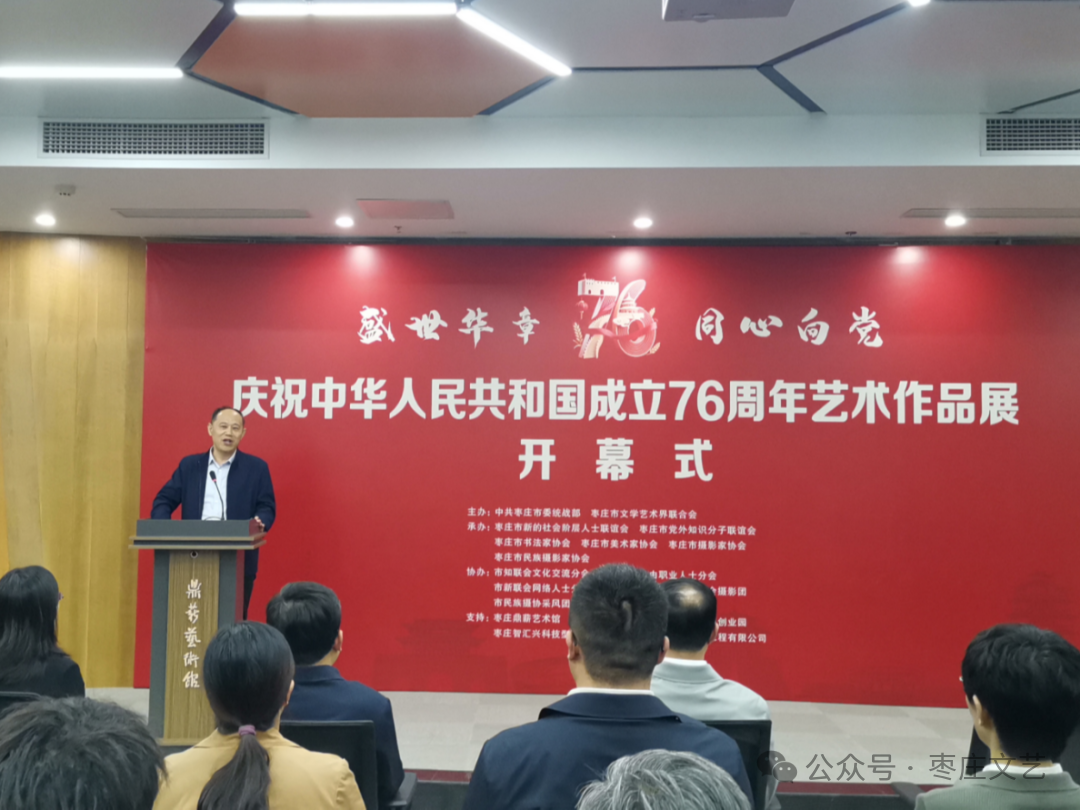本次艺术展以“‘盛世华章·同心向党’庆祝中华人民共和国成立76周年”为主题,汇集了全市党外知识分子、新的社会阶层人士和知名书画家、摄影家创作的作品106件。创作者们以独特的艺术视角、深厚的创作功底,讲述枣庄故事、定格精彩瞬间、抒发壮志豪情,深情表达了对祖国的热爱、对时代的赞颂、对未来的期许,充分展现了新时代统一战线的精神风貌,让“同心向党”的信念在艺术创作中落地生根,也为全市人民带来了一场精彩的文化艺术盛宴,进一步激发了广大群众爱党爱国的热情。