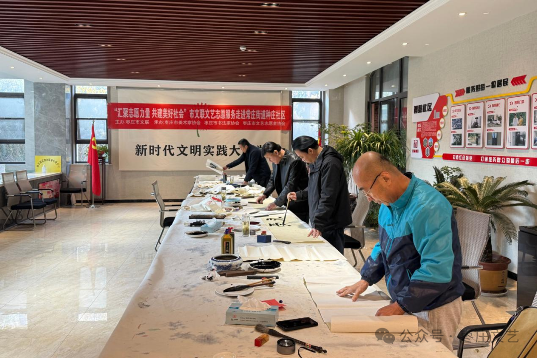 为深入学习贯彻党的二十届四中全会精神和习近平总书记关于社会工作的重要论述,12月5日,在第40个“12·5国际志愿者日”来临之际,由市文联主办,市文艺志愿者协会、市美协、市书协承办的“汇聚志愿力量 共建美好社会”|市文联文艺志愿服务活动在薛城区常庄街道种庄社区举行。市文联党组成员、副主席叶建军,市文联党组成员、副主席、市文艺志愿者协会主席张灿森,市书协主席马德田及书画艺术家10余人参加活动。