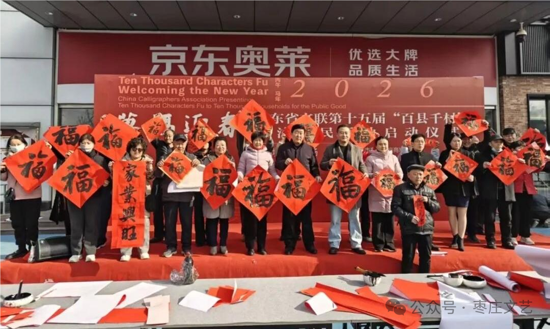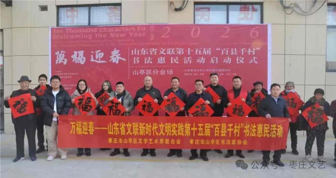 为深入践行习近平文化思想,传承弘扬中华优秀传统文化,让文艺惠民服务直达基层一线,1月15日上午,万福迎春——山东省文联新时代文明实践第十五届“百县千村”书法惠民活动枣庄分会场在台儿庄区运河街道办事处华阳社区居委会启动。