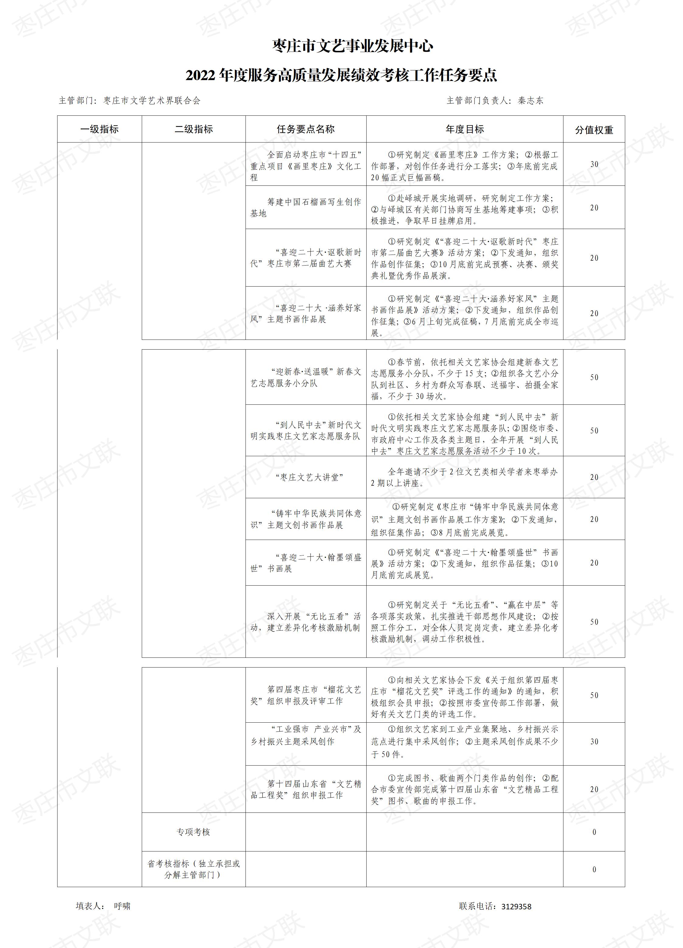 枣庄市文艺事业发展中心2022年度服务高质量发展绩效考核工作...