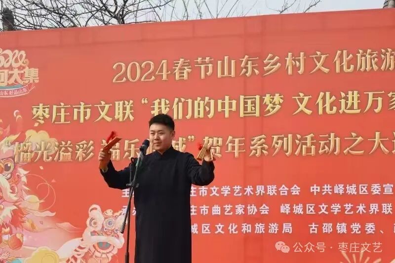 为深入学习贯彻党的二十大精神,丰富广大群众的精神文化生活。2月8日,由枣庄市文联、峄城区委宣传部主办的“我们的中国梦 文化进万家”启动仪式暨“榴光溢彩 福乐峄城”贺年系列活动在峄城区古邵镇举办,这也是2024春节山东乡村文化旅游节系列活动之一。枣庄市文联、峄城区委宣传部、枣庄市曲艺家协会一行13人参加活动。