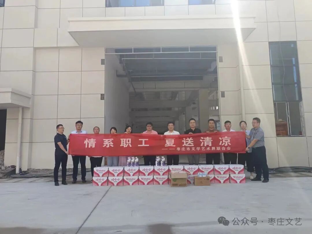 7月29日上午,市文联到峄城区帮包重点项目现场,开展“情系职工 夏送清凉”暨“聚力项目 共建攻坚”主题党日活动,市文联党组成员、副主席叶建军,党组成员、市文艺事业发展中心主任甘真和机关党支部部分党员参加了活动。