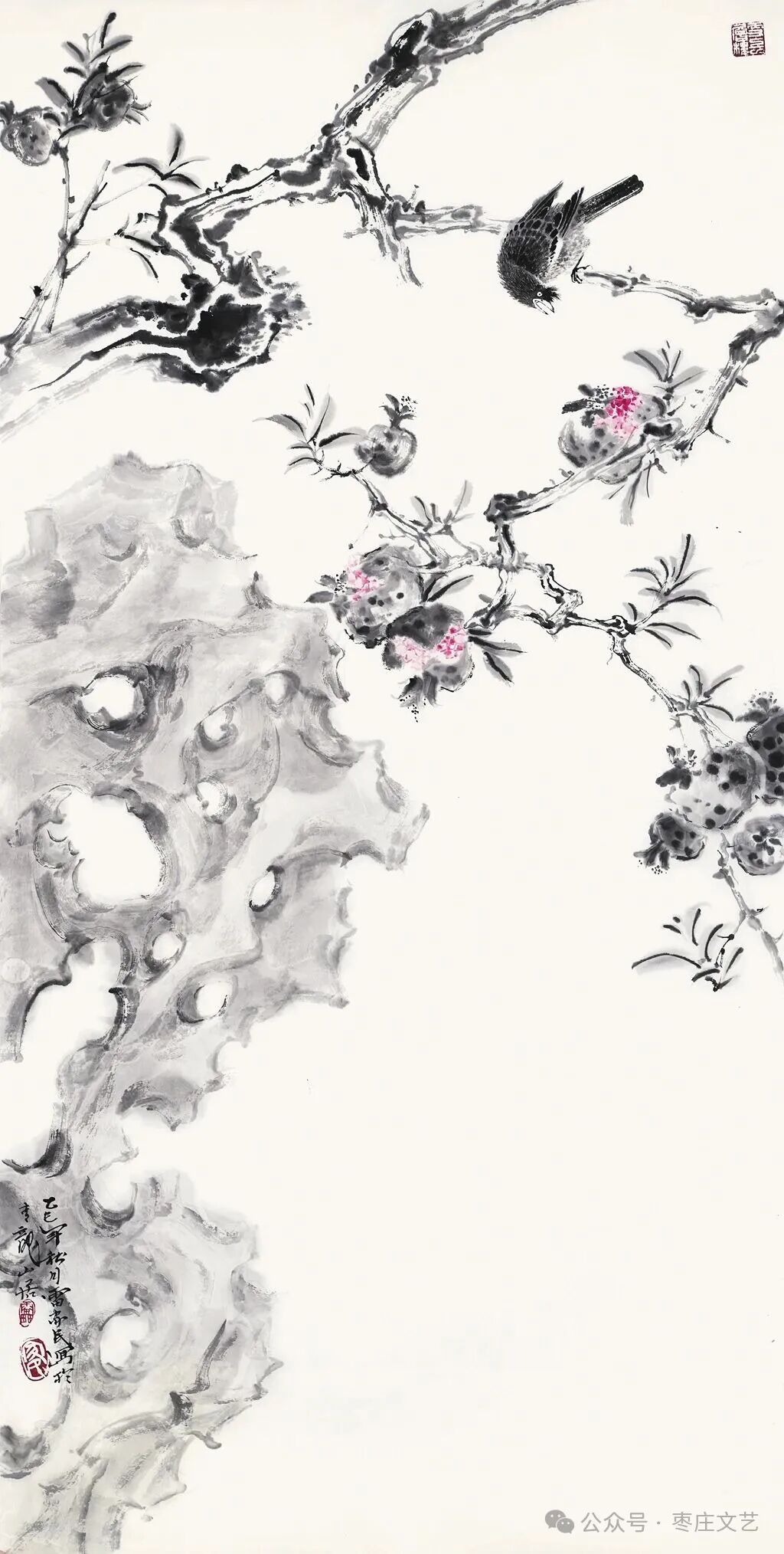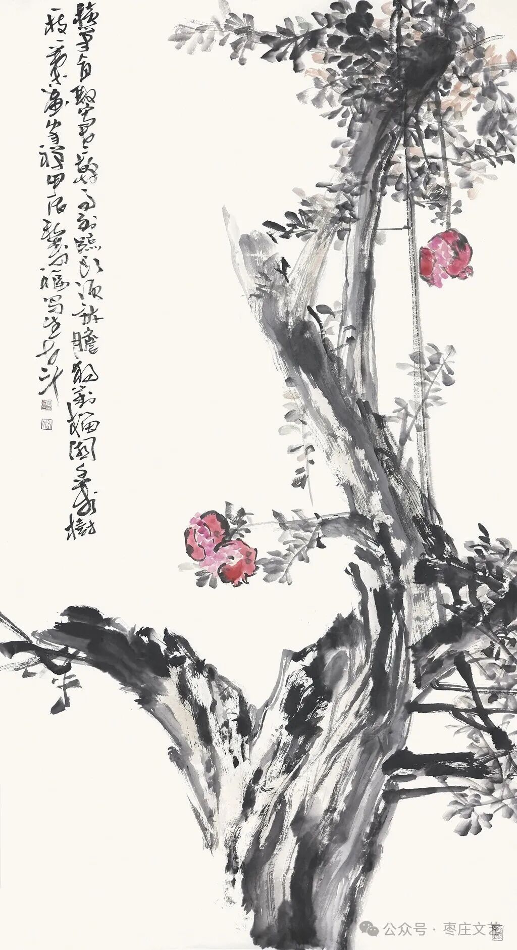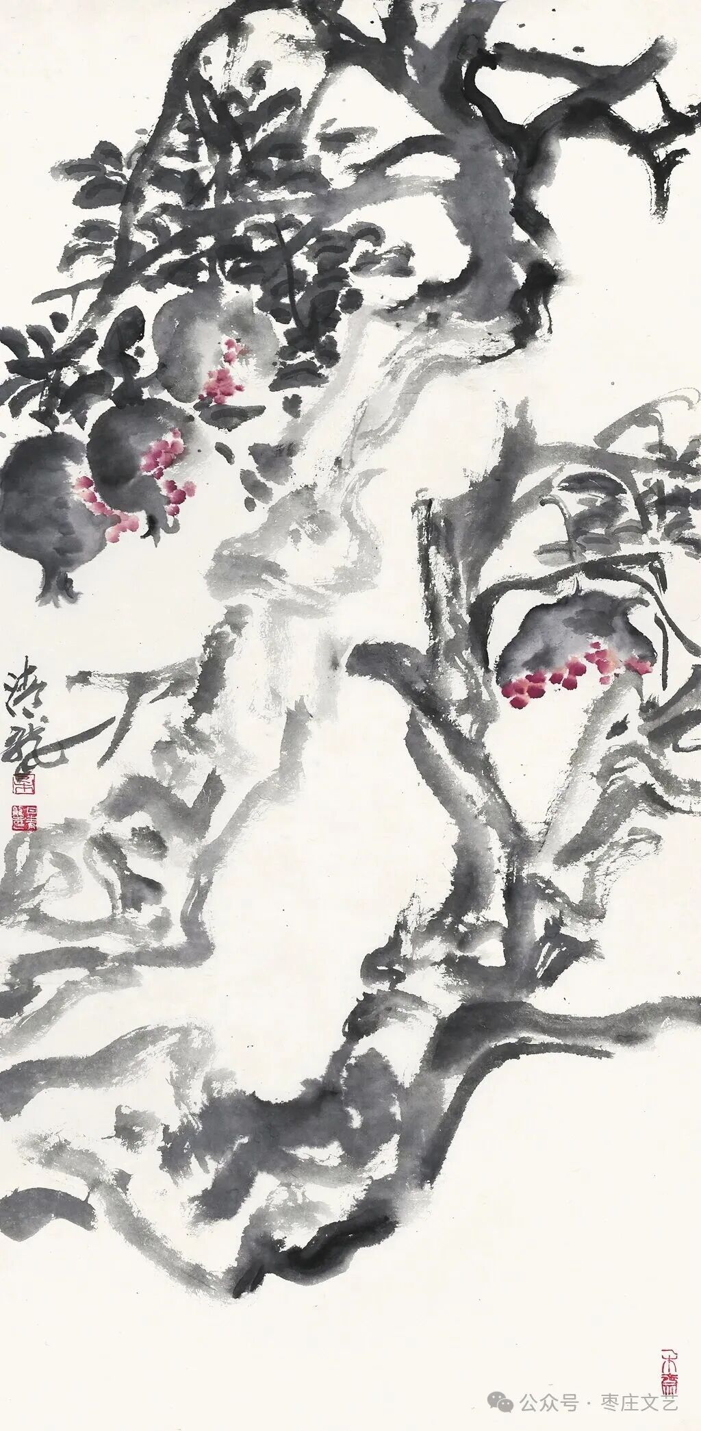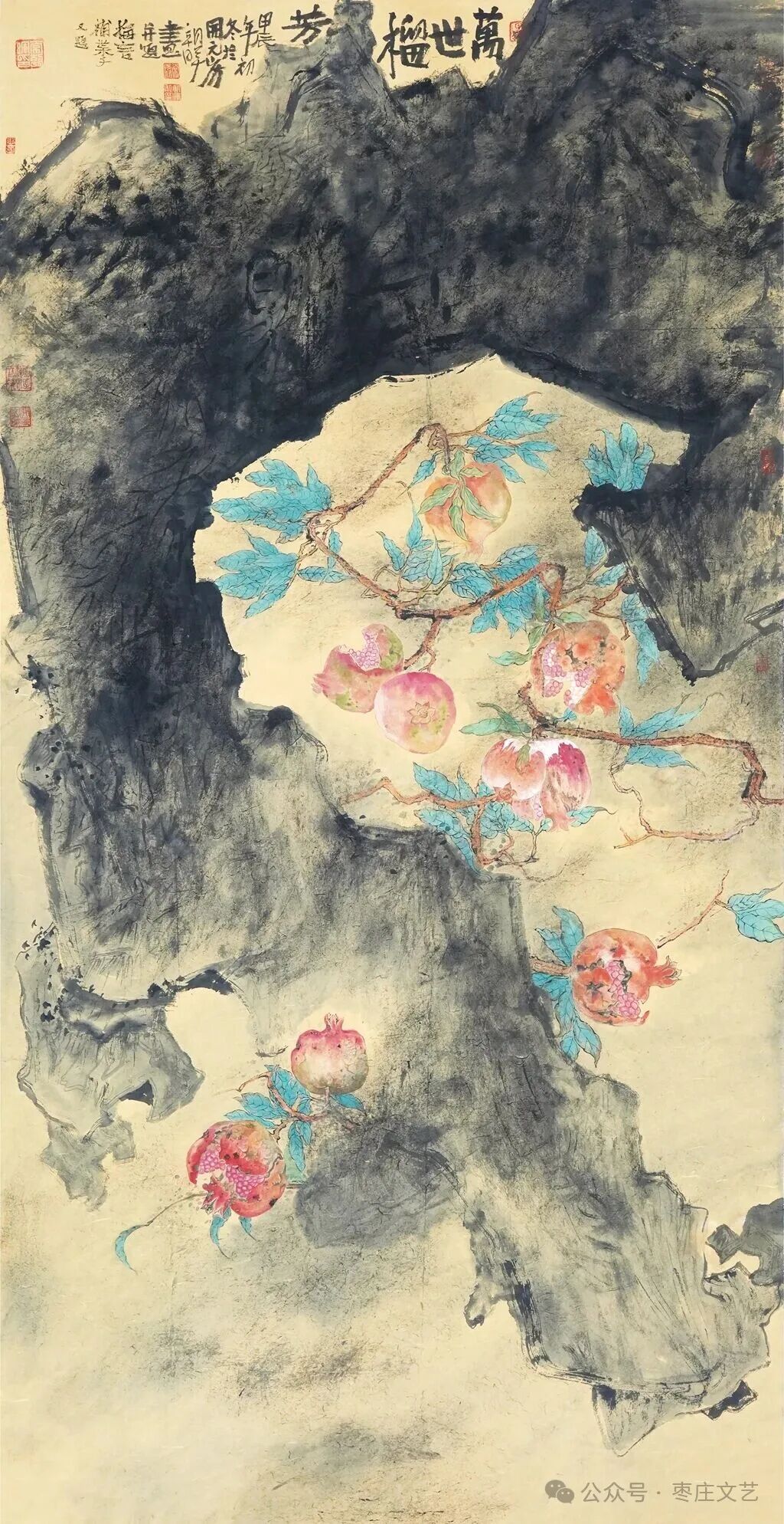 枣庄作为“中国石榴之乡”,既有万亩榴园的壮丽景观,更承载着深厚的石榴文化。近年来,枣庄以石榴为纽带,打造了国家级石榴种质资源库、中国石榴博物馆等文化地标,推动石榴产业与文化旅游深度融合。习近平总书记视察枣庄时,曾殷切期望乡亲们的生活“像石榴果一样红红火火”。这为石榴文化的传承与创新注入了强大动力,为石榴这一古老的绘画题材赋予了全新的文化内涵和现实意义。“夫画者,成教化、助人伦、穷神变、测幽微,与六籍同功。”张彦远在《历代名画记》中的论断,揭示了艺术服务社会、启迪人心的重要价值。“榴香齐鲁·艺绘华章”山东省首届石榴主题美术作品展的举办,不仅是一场艺术盛宴,更是一次文化传播与精神传承。它让我们在欣赏石榴之美的同时,更深切的感悟到了中华文化的博大精深,激发了对美好生活的无限向往。愿此次展览如榴花般绚烂,似榴实般丰硕,为弘扬中华优秀传统文化、推动新时代美术事业发展绘就佳篇。