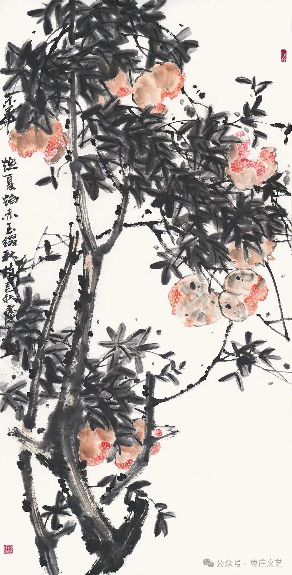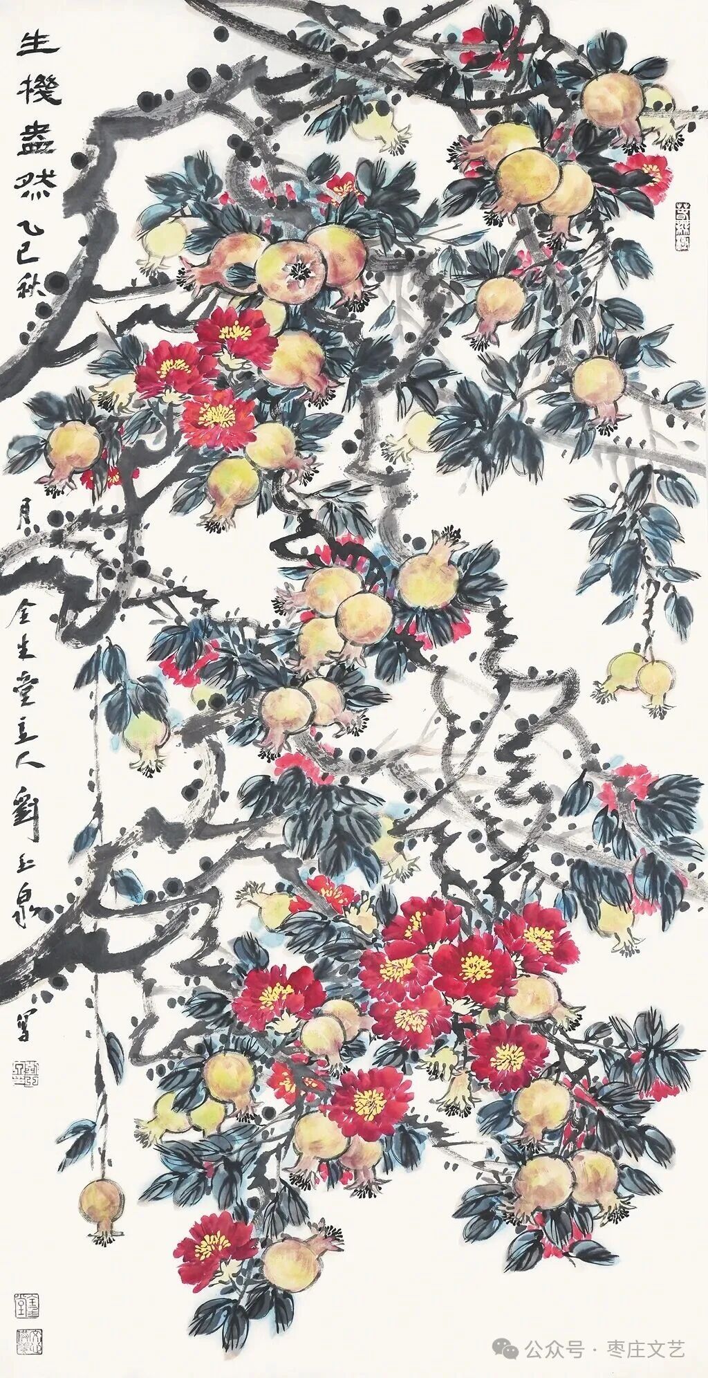 艺术的生命力在于传承与创新。此次参展的画家们,既深耕传统,从“青藤白阳”等前辈大师的技法中汲取养分;又立足时代,以当代视角诠释石榴的文化内涵。他们笔下的石榴,既是“多子多福”的吉祥象征,也是“民族团结”的时代隐喻;既展现了“榴花似火”的自然之美,也传递了“红红火火”的生活愿景。这种对传统的创造性转化、对时代的深刻回应,正是当代美术工作者守正创新的生动实践。