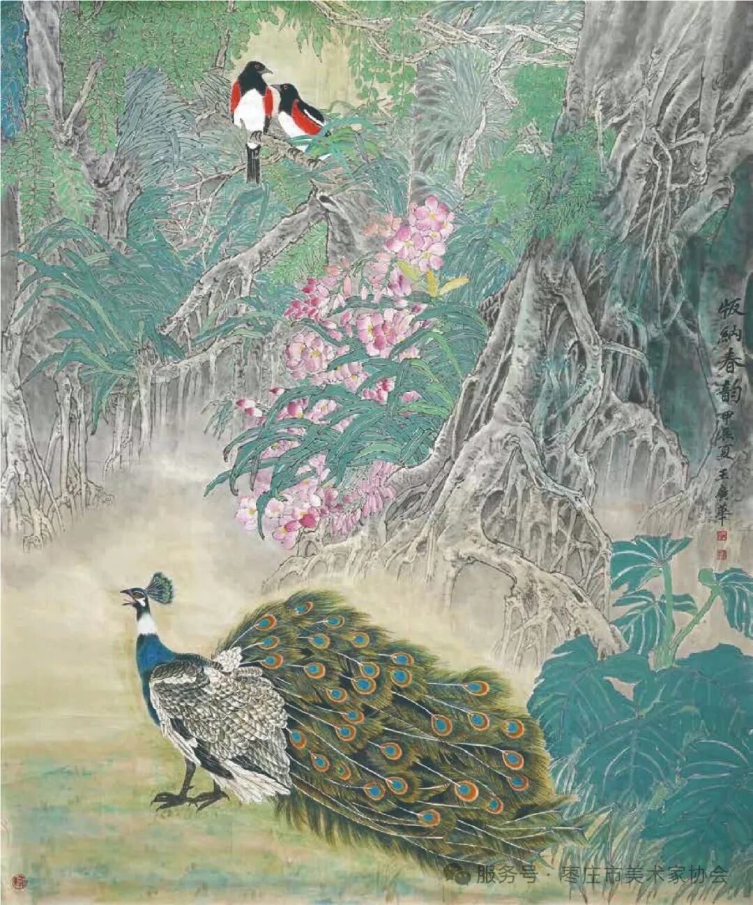 作为中国画重要分科之一的花鸟画,它所呈现出的绝不是对动植物的机械描摹与创作技法的生搬硬套,其自身有着鲜明的艺术特点和创作规律,它是花鸟画家们建立在技法之上的对“自然”的理解,是花鸟画家们面对“自然”时的精神状态的表现,是在解决“技”与“道”的关系后,用艺术的思维探索生命意义,用艺术的手法去展现客观世界与主观世界的契合,最终使这种具有强大生命力的美,永恒存在于笔下的花木竹石里、鸟兽鱼虫中。