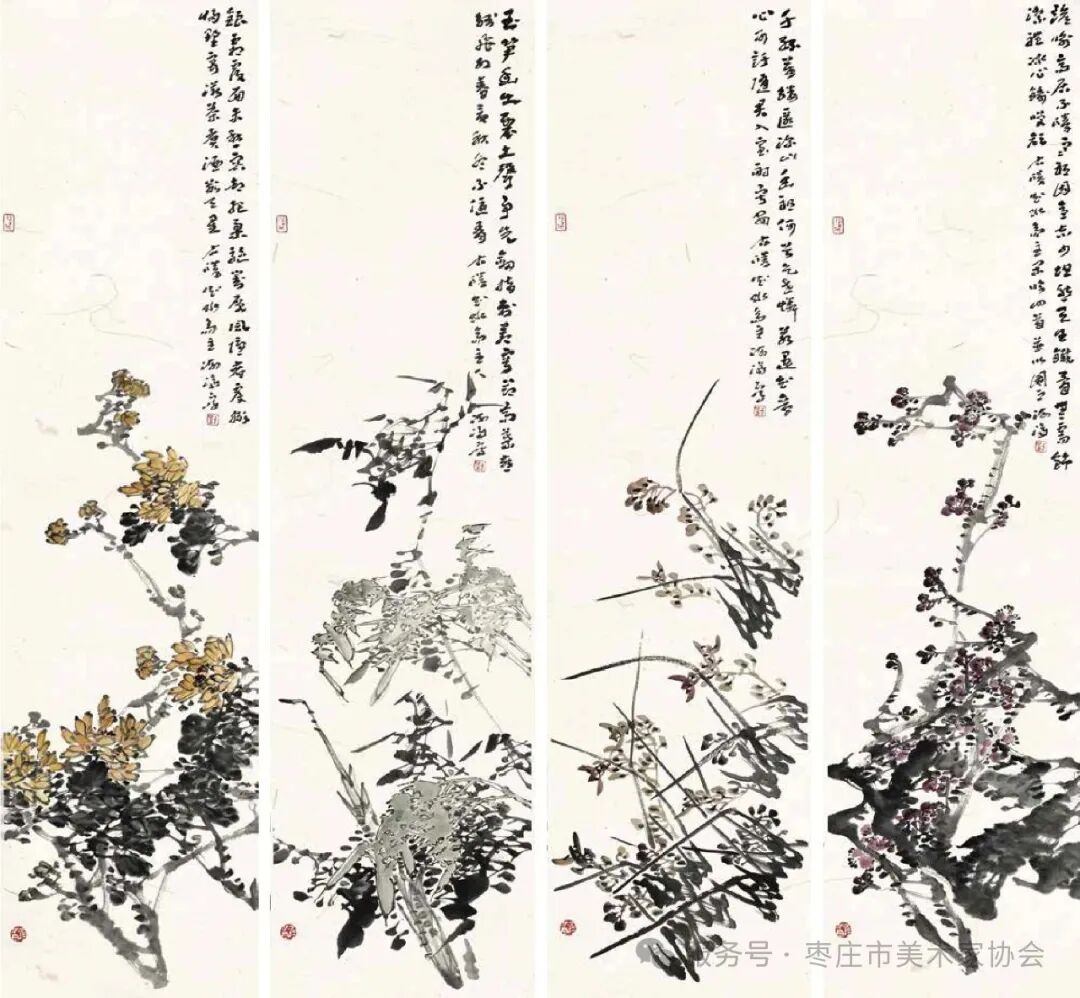 刘 龙 《梅兰竹菊》四条屏 138X34cmX4 2025年